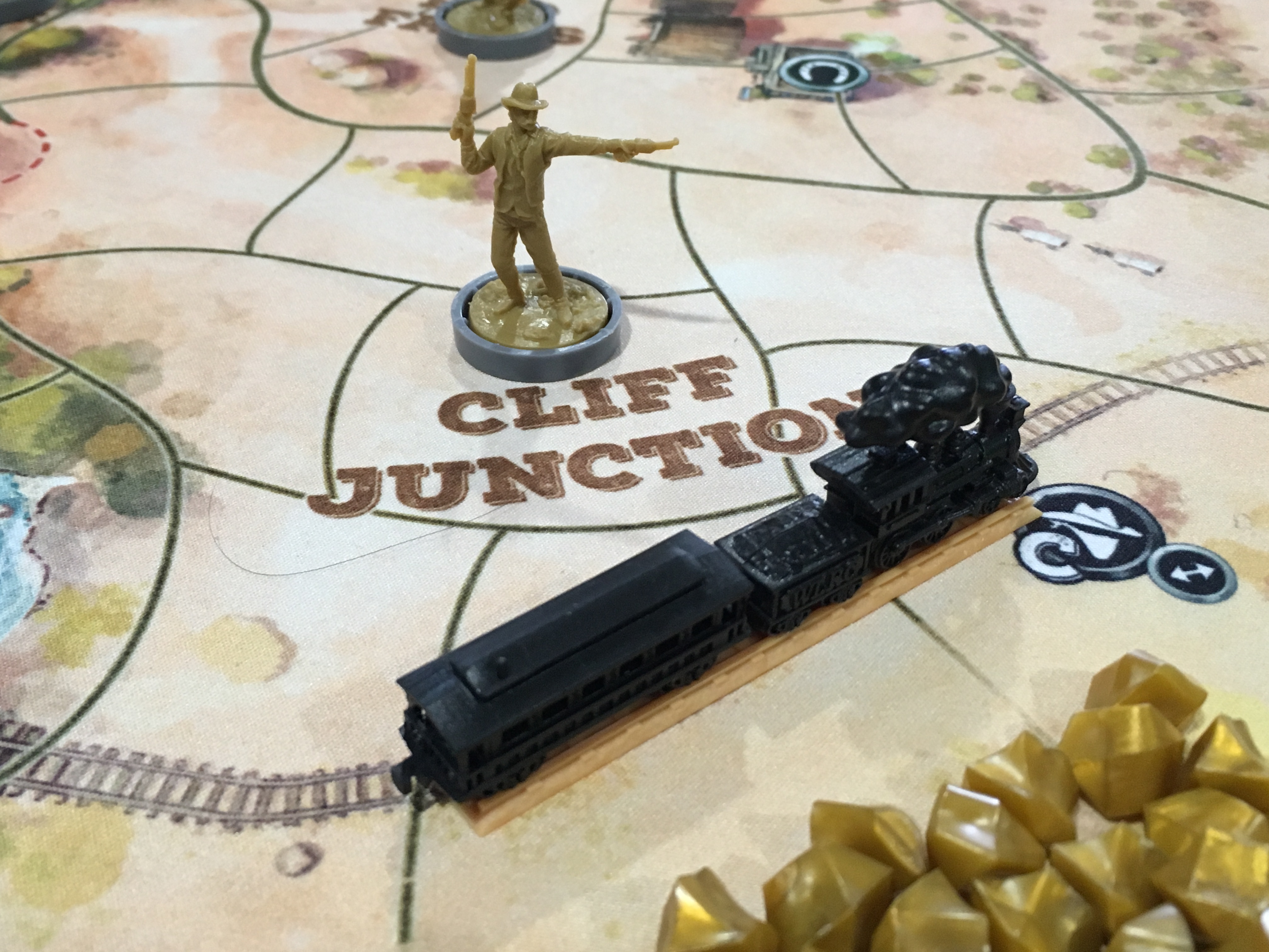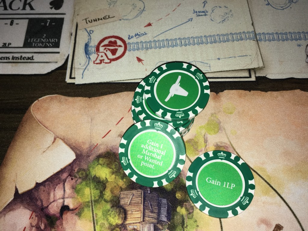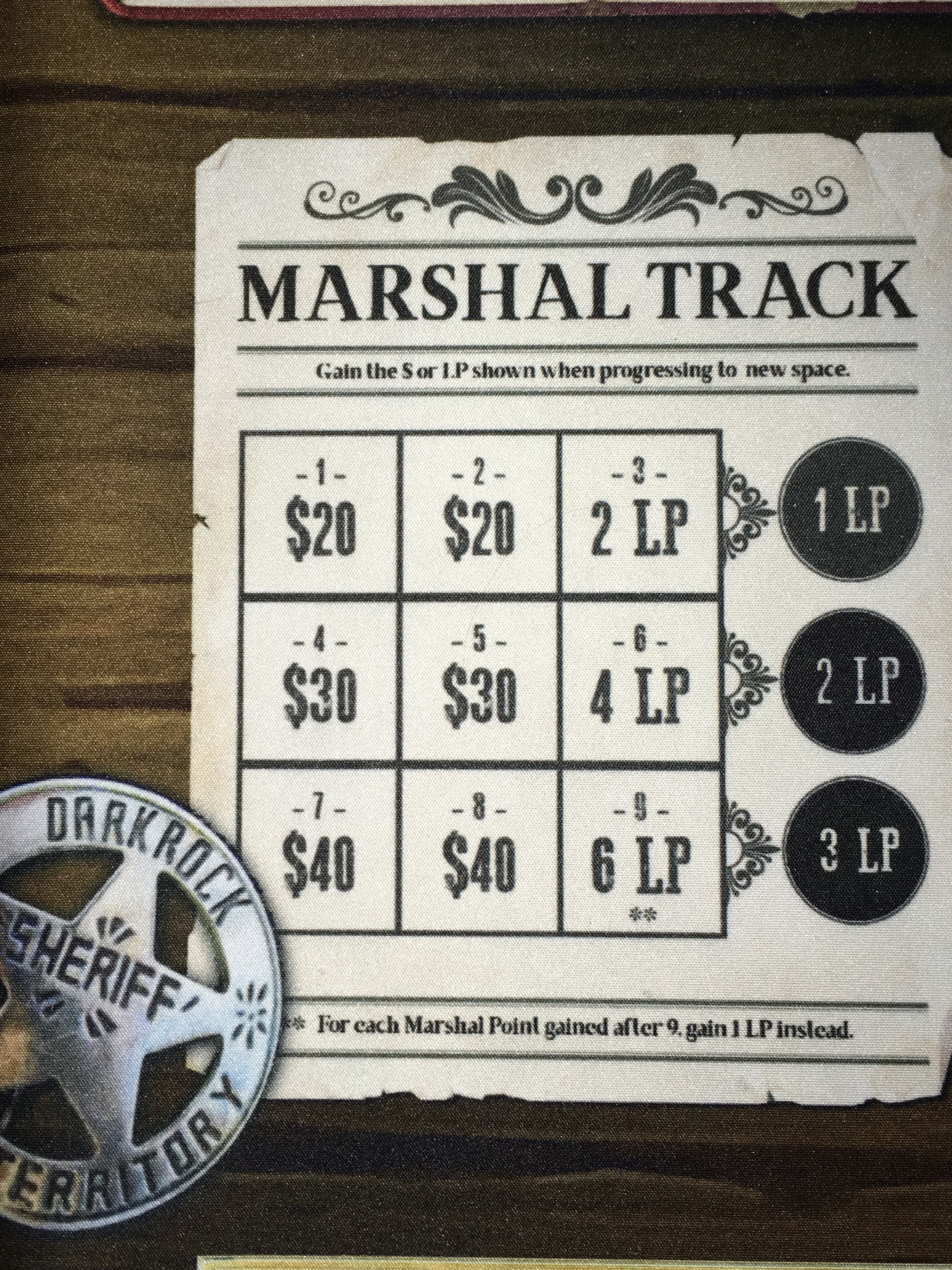 The gameplay doesn’t change much, you still start your turn by taking money and or poker cards, and you still get three actions to take…which can be any repetition or combination of Moving, Taking Location Actions, Using Card Actions, and Fighting (which can be dueling, robbing or arresting). You also still end each person’s turn by checking the Story Card, Discarding down to 5 poker cards, Collecting your applicable Wanted points, and Checking for victory. So whats new…now you also… move the train at the start of your turn…that’s it! The rest of the new stuff is just built into the game with new places to visit, new ways of dealing with outlaws, new confrontations with Claim Jumpers, an option of playing a new gambling game called Faro, accruing new gambling points (which work just like the Marshal & Outlaw Tracks), gambling with the new High Rollers, and lastly delivering new longhorns tokens. Everything new is just built into the game…you don’t have to learn anything new…aside from learning how Faro was played (not sure they even play this game anymore lol).